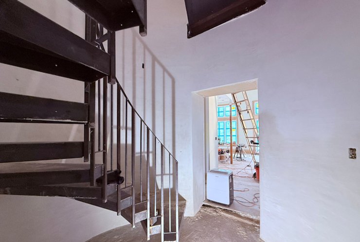 Curved plaster stairway