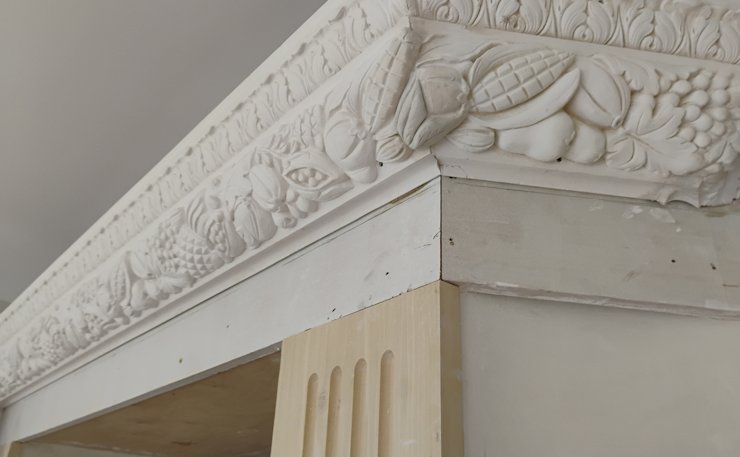 Details are tooled in with molding plaster to create a seamless appearance.