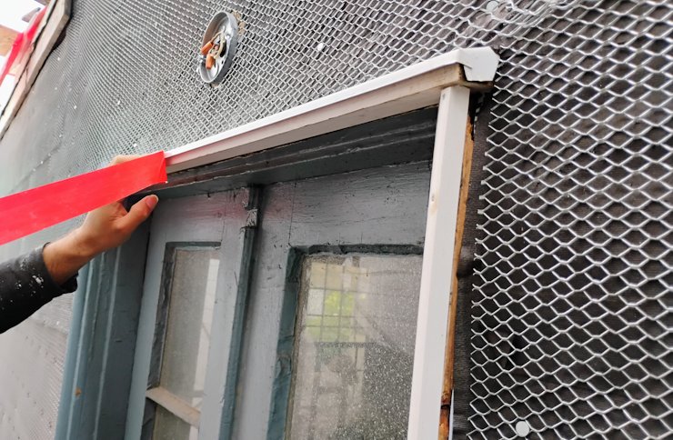 Protecto-wrap was put on the sides of the window and door trim folded over