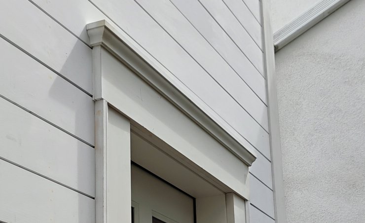 The freshly renovated house next door doesn't have any flashing over the door trim. This is built to leak and rot.