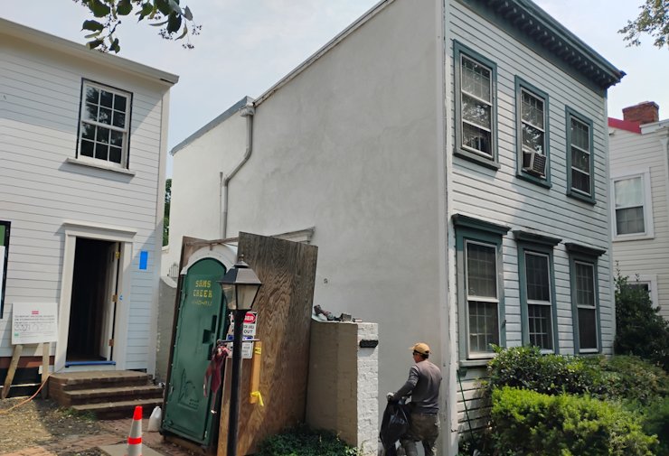 Metal lath and stucco was put on this original wood clapboard siding. This wood clapboard siding was probably made here in Georgetown in a water powered sawmill.