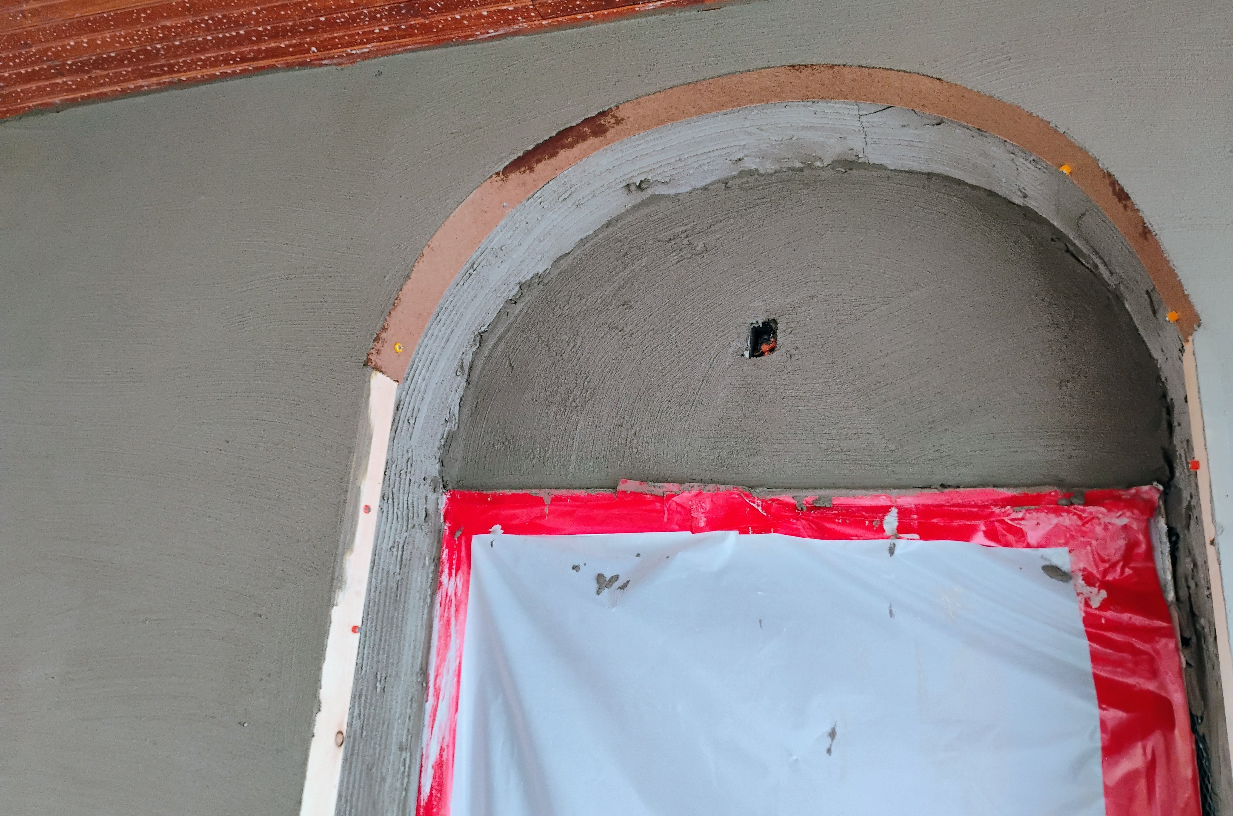 Arches are formed with masonite and filled.