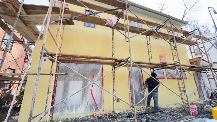 It's raining. It rained a lot after the snow melted. Work progressed slow but steady.